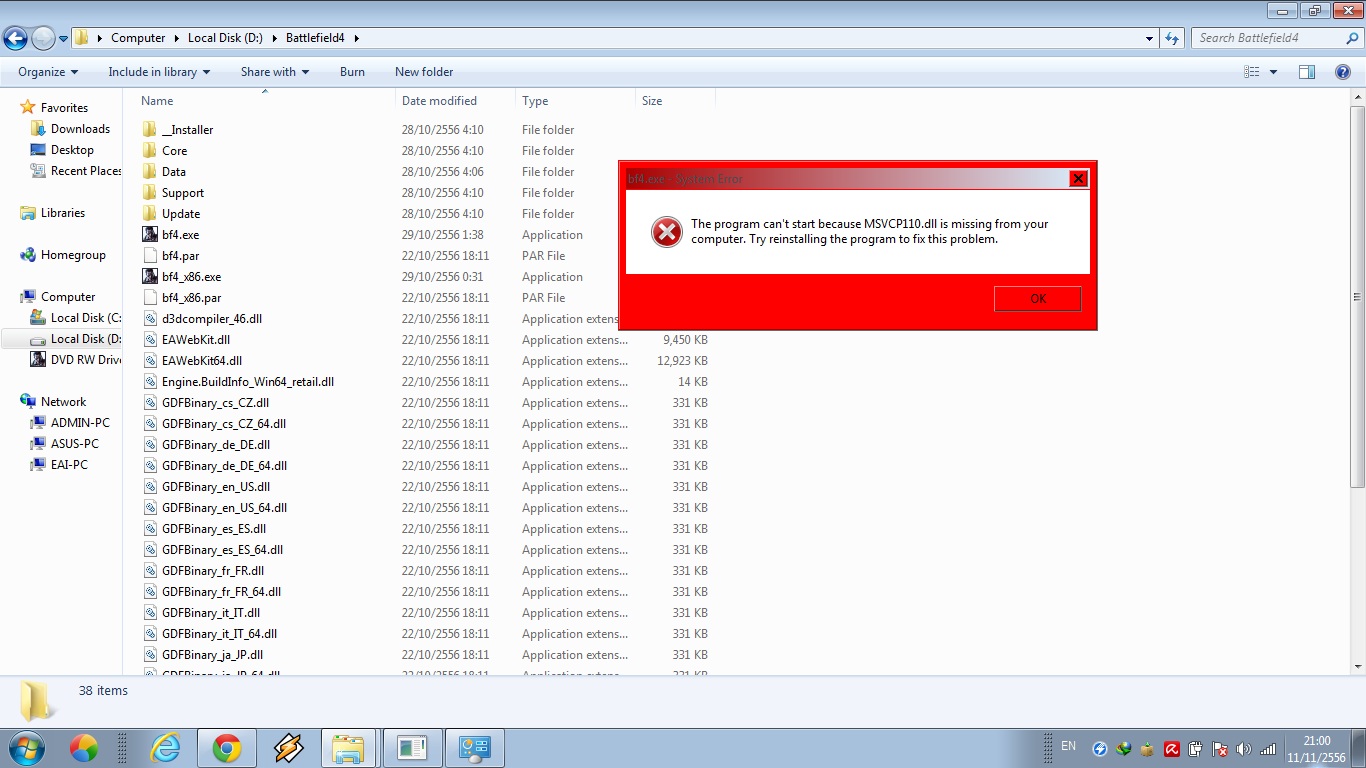 ไปที่ folder เกมอ่ะครับ battle field4 > _installer > vc > vc2012update3 > redist > vcredist x86 กับ vcredist x64 กดอัพเดตมันซะ