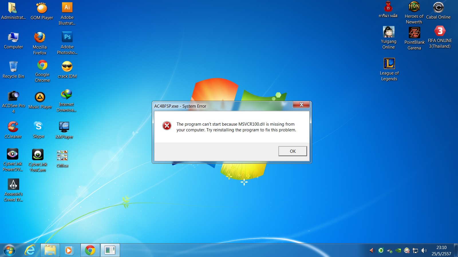 ถ้าใช่ ให้ทำการ Uninstall ออกไปเลยครับ ถ้าจะเล่นเกมส์ Copy ต้องไม่ลง Anti-Virus ครับ มันจะลบ Crack ทิ้งทำให้เข้าเกมส์ไม่ได้